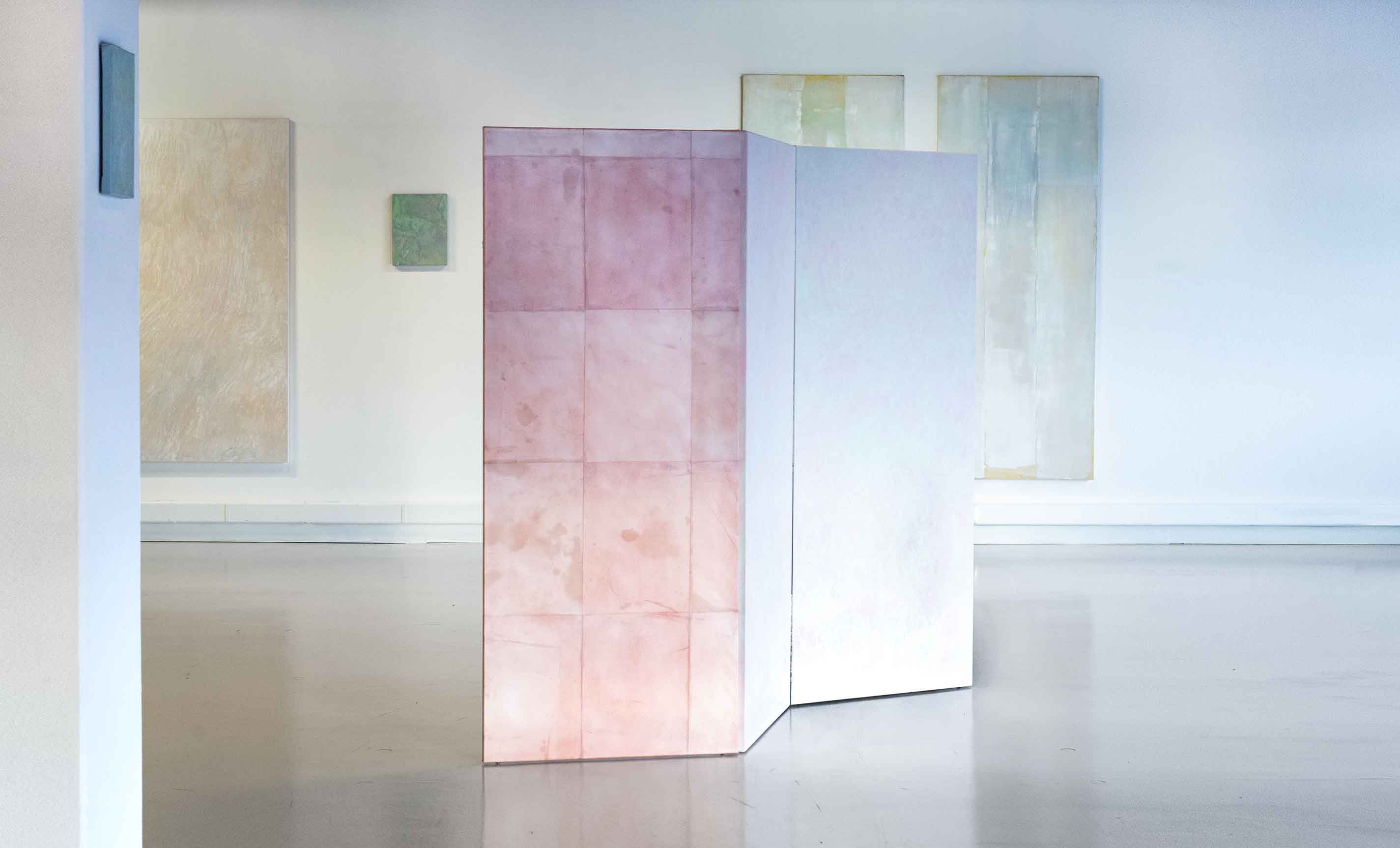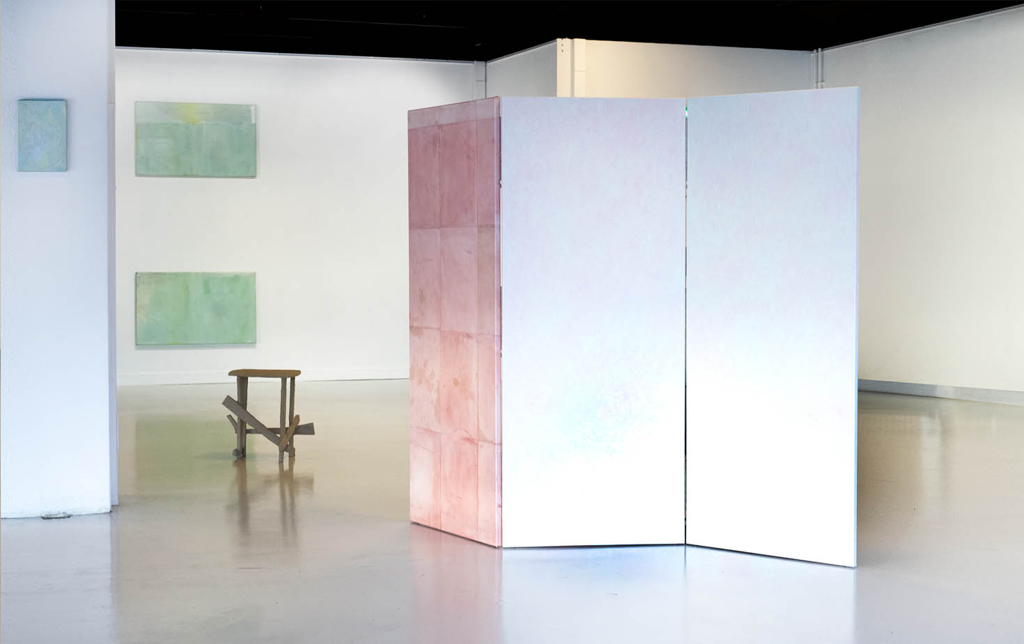 L’exposition CIEL BAVE NACRE est née de la rencontre et des porosités entre les travaux de Kelly Weiss, Iwan Warnet et Margaux Janisset. Tou·te·s trois travaillent la peinture avec une attention portée à la fabrication du geste, à un certain retrait de la main qui crée. Les toiles et les oeuvres in situ dialoguent avec les caractéristiques du lieu d’exposition et proposent au regardeur une expérience sensible des qualités de surfaces, dans un espace où les variations de lumière agissent sur leurs perceptions.